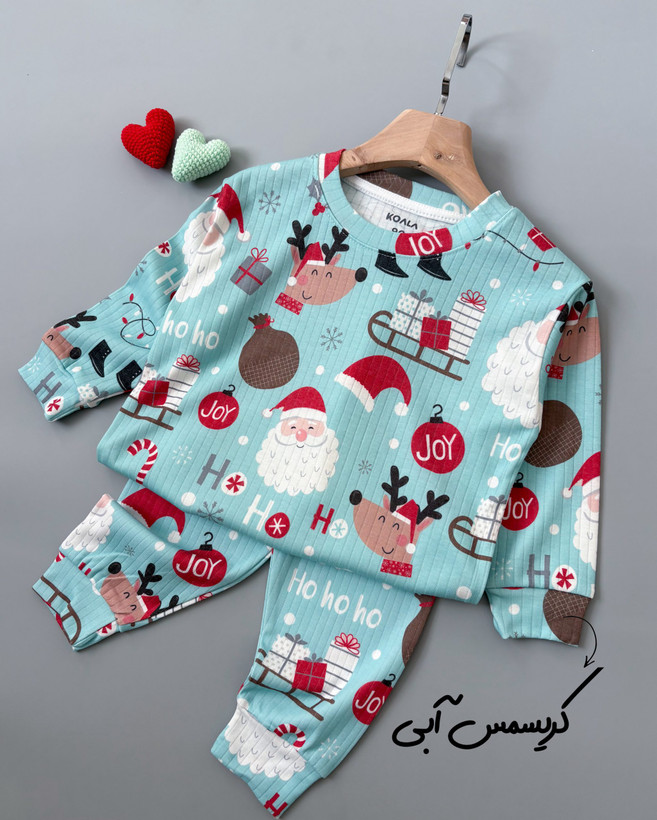 ست بلوز شلوار کوالا طرح کریسمس آبی