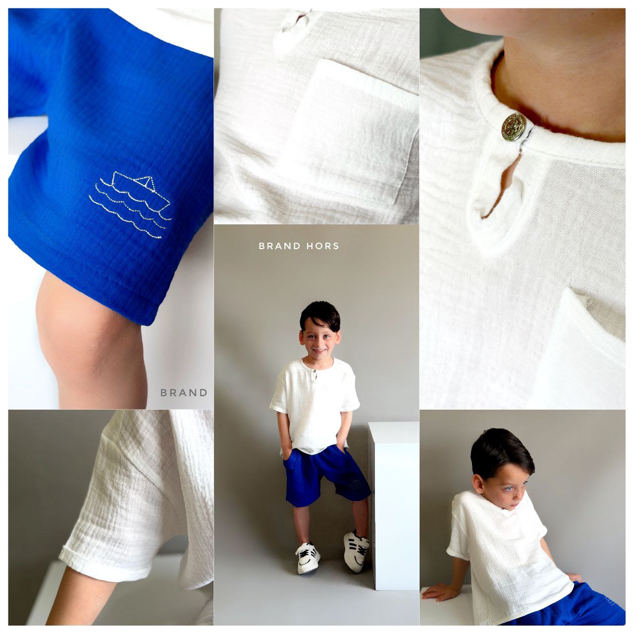 سایز چهار: پهنا لباس: ۴۰/ قد لباس: ۴۶/ قد شلوارک: ۳۶