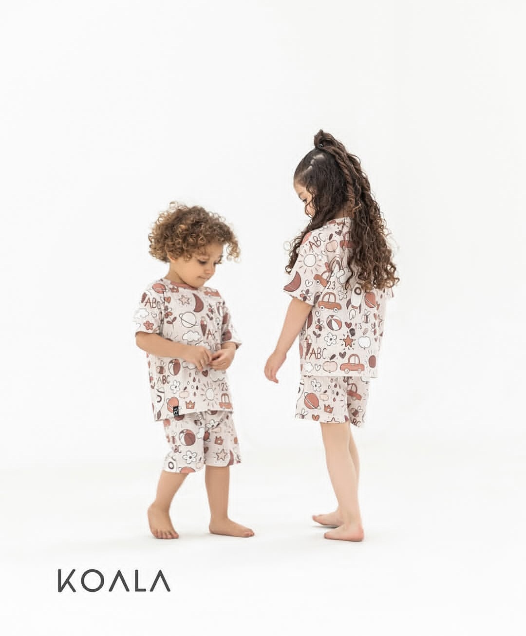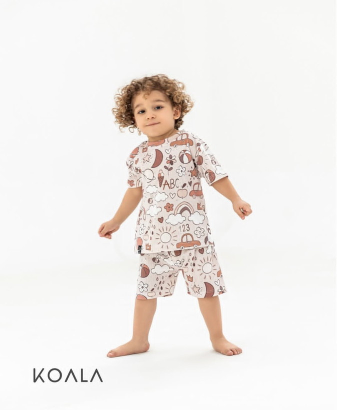 ست تیشرت و شلوارک نخ پنبه طرح اسباب بازی قهوه ای