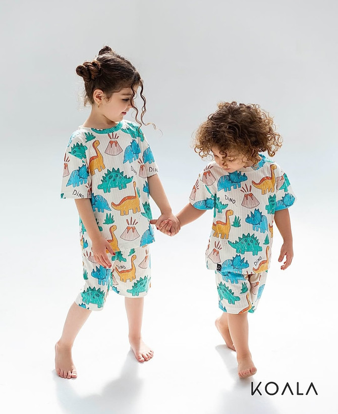 ست تیشرت و شرتک کبریتی طرح دایناسور
