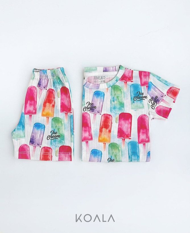 ست تیشرت و شرتک کبریتی طرح بستنی