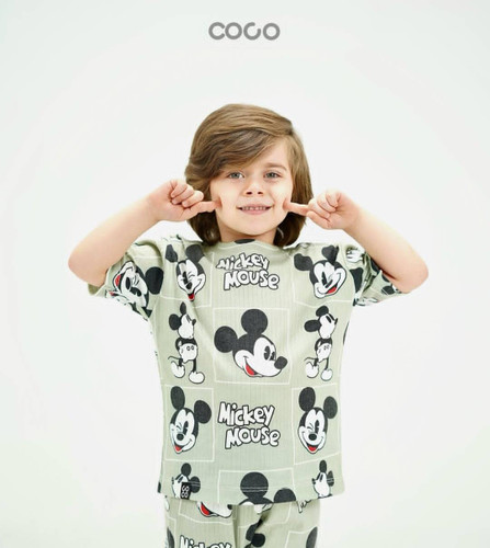 ست بلوز شلوار راحتی طرح میکی سبز