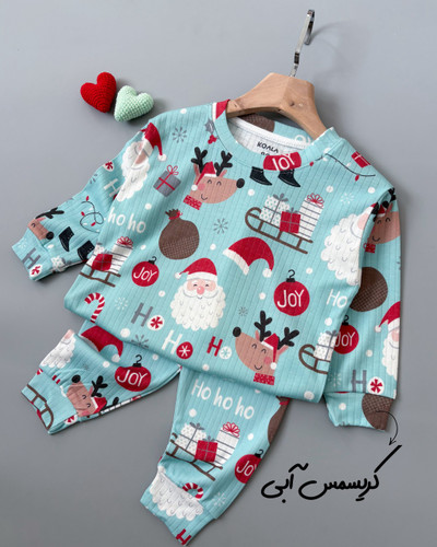 ست بلوز شلوار راحتی طرح بابانوئل آبی
