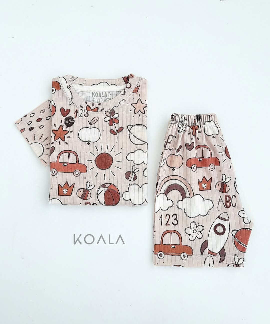 ست تیشرت و شلوارک نخ پنبه طرح اسباب بازی قهوه ای