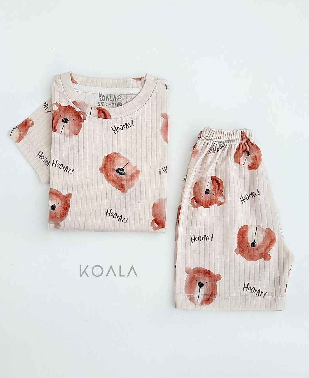 ست تیشرت و شلوارک کوالا طرح هاپو قهوه ای
